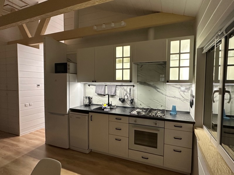 - Оборудование: гладильная доска, духовой шкаф, кондиционер, микроволновая печь, набор посуды, плита газовая, посудомоечная машина, стиральная машина, сушилка для белья, телевизор ЖК, утюг, холодильник, чайный набор посуды, электрочайник