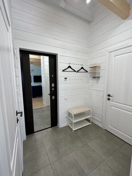 - Мебель: вешалка, гардеробная, диван раскладной, зеркало, кровать двуспальная, прикроватные тумбочки, стол, стулья, шкаф